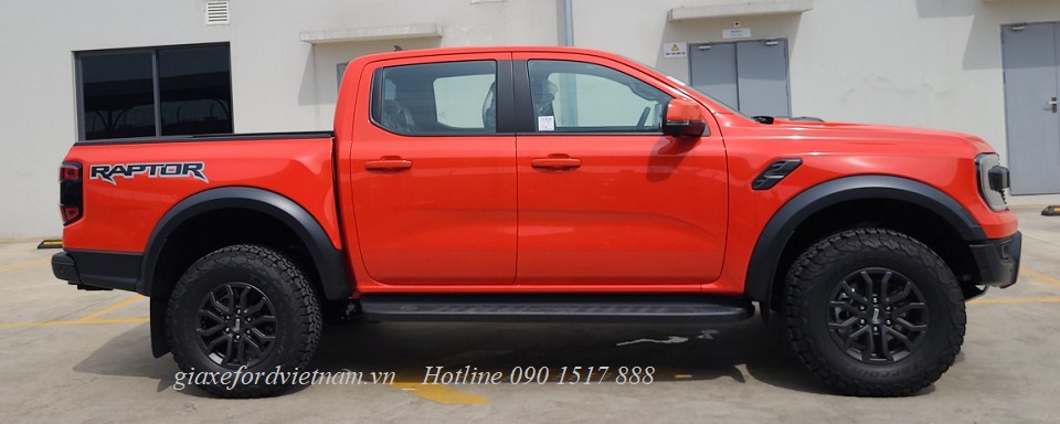 Phần thân xe ranger raptor 2023 nổi bật với ốp cua lốp màu đen và bộ lốp địa hình cao cấp. Bậc lên xuống Ford Ranger Raptor được làm bằng gang đúc nguyên khối và sơn đen. bậc lên xuống của Ford Raptor có khả năng chịu lực va đập tốt.